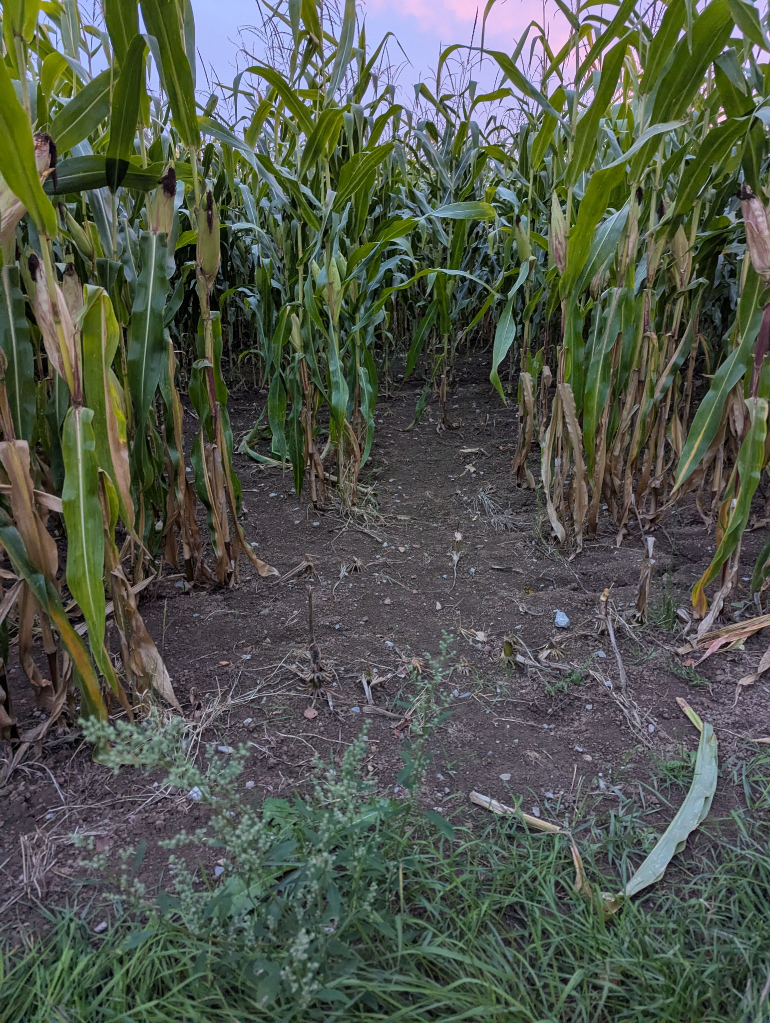 Für Aufregung sorgte unterwegs auch eine kleine Feldmaus, die mitten auf dem Weg saß und sich vor Schreck nicht bewegte –das Interesse der Kinder und Erwachsenen war groß. Außerdem konnten wir entlang des Weges viele Wanderwege des Bibers erkennen. Diese führten in die Maisfelder. Dort fanden sich frische Fraßspuren. Zwar hält sich der Schaden bislang noch in Grenzen, dennoch ist der Biber dadurch nicht überall beliebt.